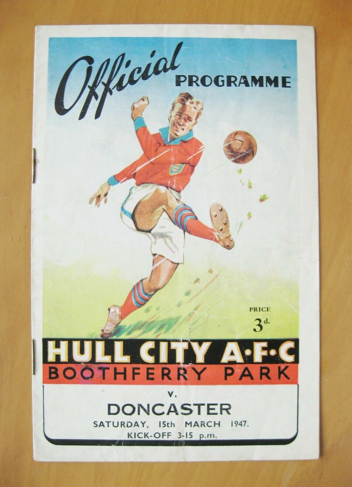 The Division Two game between Hull City and Doncaster Rovers on Saturday 15th March 1947.«1946 - 1947 SeasonMore games against Hull City» the game Date: Saturday 15th March 1947 Competition: Division Two Final Score: 0-1 Ground: Boothferry Park programme