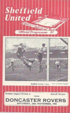 The Division Two game between Sheffield United and Doncaster Rovers on Saturday 24th November 1956.«1956 - 1957 SeasonMore games against Sheffield United» the game Date: Saturday 24th November 1956 Competition: Division Two Final Score: 4-0 Ground: Bramall Lane programme