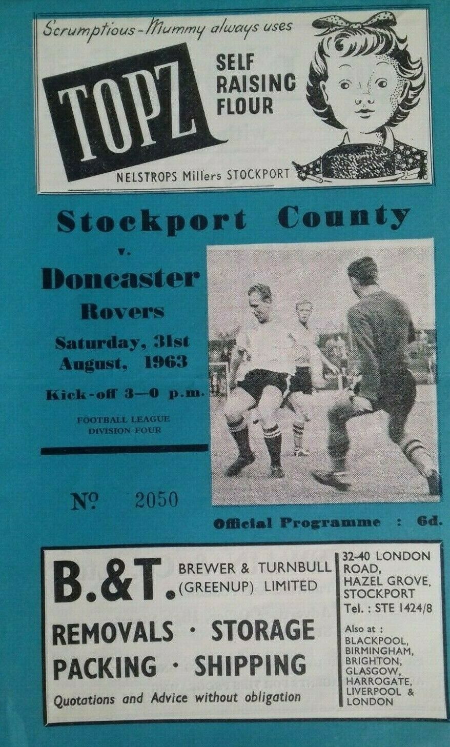 The Division Four game between Stockport County and Doncaster Rovers on Saturday 31st August 1963.«1963 - 1964 SeasonMore games against Stockport County» the game Date: Saturday 31st August 1963 Competition: Division Four Final Score: 1-3 Ground: Edgeley Park programme