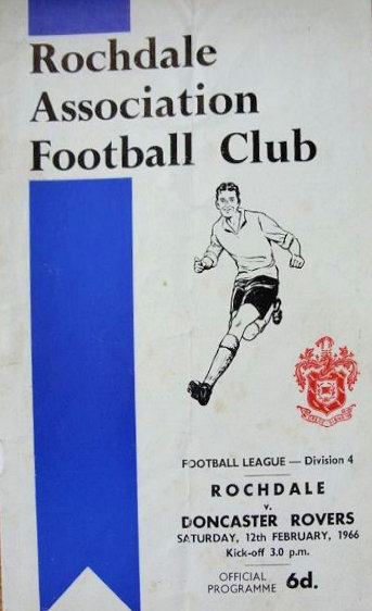 The Division Three game between Rochdale and Doncaster Rovers on Saturday 12th February 1966.«1965 - 1966 SeasonMore games against Rochdale» the game Date: Saturday 12th February 1966 Competition: Division Three Final Score: 0-1 Ground: Spotland Stadium programme