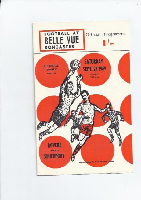 The Division Three game between Doncaster Rovers and Southport on Saturday 27th September 1969.«1969 - 1970 SeasonMore games against Southport» the game Date: Saturday 27th September 1969 Competition: Division Three Final Score: 1-0 Ground: Belle Vue programme