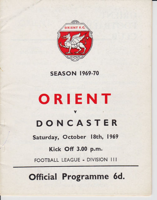 The Division Three game between Leyton Orient and Doncaster Rovers on Saturday 18th October 1969.«1969 - 1970 SeasonMore games against Leyton Orient» the game Date: Saturday 18th October 1969 Competition: Division Three Final Score: 2-0 Ground: Brisbane Road programme