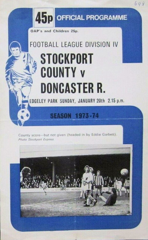 The Division Four game between Stockport County and Doncaster Rovers on Sunday 20th January 1974.«1973 - 1974 SeasonMore games against Stockport County» the game Date: Sunday 20th January 1974 Competition: Division Four Final Score: 0-0 Ground: Edgeley Park programme