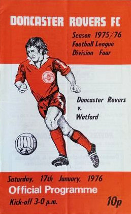 The Division Four game between Doncaster Rovers and Watford on Saturday 17th January 1976.«1975 - 1976 SeasonMore games against Watford» the game Date: Saturday 17th January 1976 Competition: Division Four Final Score: 1-2 Ground: Belle Vue programme