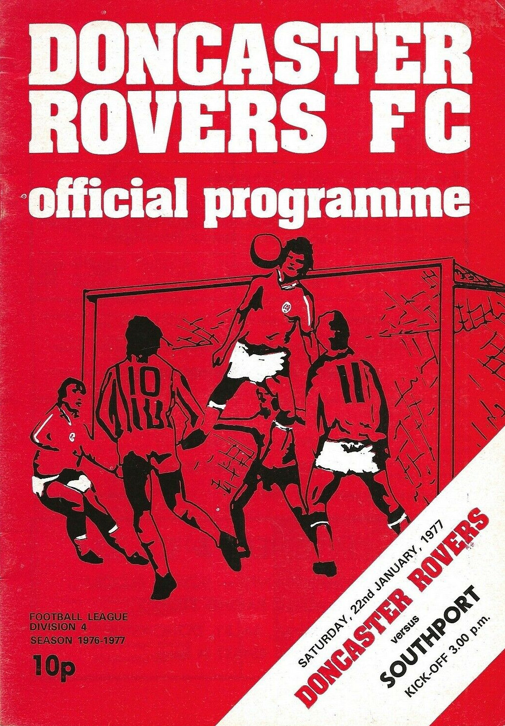 The Division Four game between Doncaster Rovers and Southport on Saturday 22nd January 1977.«1976 - 1977 SeasonMore games against Southport» the game Date: Saturday 22nd January 1977 Competition: Division Four Final Score: 3-1 Ground: Belle Vue programme