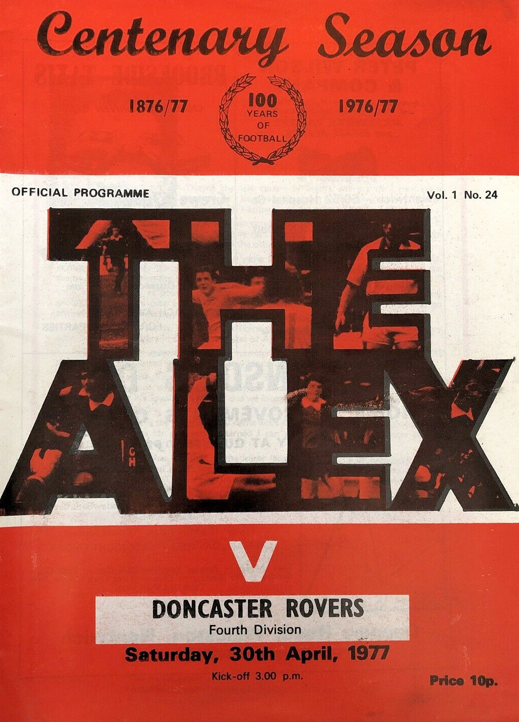 The Division Four game between Crewe Alexandra and Doncaster Rovers on Saturday 30th April 1977.«1976 - 1977 SeasonMore games against Crewe Alexandra» the game Date: Saturday 30th April 1977 Competition: Division Four Final Score: 1-2 Ground: Alexandra Stadium programme