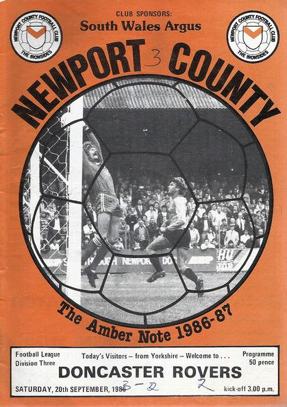 The Division Three game between Newport County and Doncaster Rovers on Saturday 20th September 1986.«1986 - 1987 SeasonMore games against Newport County» the game Date: Saturday 20th September 1986 Competition: Division Three Final Score: 3-2 Ground: Somerton Park programme