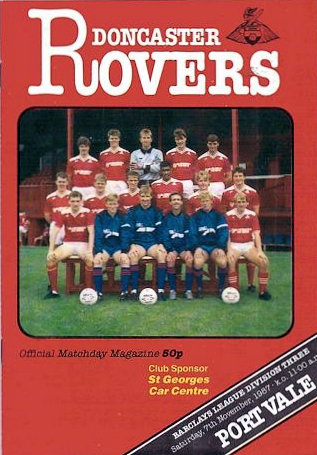 The Division Three game between Doncaster Rovers and Port Vale on Saturday 7th November 1987.«1987 - 1988 SeasonMore games against Port Vale» the game Date: Saturday 7th November 1987 Competition: Division Three Final Score: 1-1 Ground: Belle Vue programme