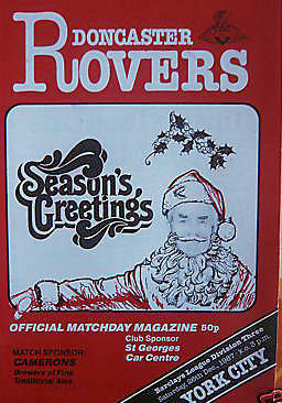The Division Three game between Doncaster Rovers and York City on Saturday 26th December 1987.«1987 - 1988 SeasonMore games against York City» the game Date: Saturday 26th December 1987 Competition: Division Three Final Score: 2-0 Ground: Belle Vue programme