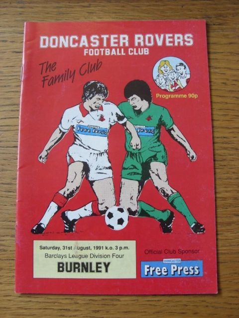 The Division Three game between Doncaster Rovers and Burnley on Saturday 31st August 1991.«1991 - 1992 SeasonMore games against Burnley» the game Date: Saturday 31st August 1991 Competition: Division Three Final Score: 1-4 Ground: Belle Vue programme
