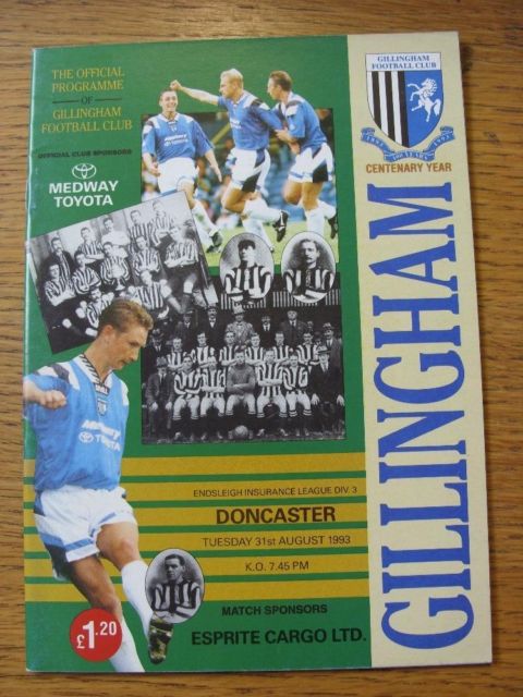 The Third Division game between Gillingham and Doncaster Rovers on Tuesday 31st August 1993.«1993 - 1994 SeasonMore games against Gillingham» the game Date: Tuesday 31st August 1993 Competition: Third Division Final Score: 0-0 Ground: Priestfield Stadium programme