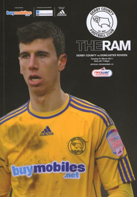 The Championship game between Derby County and Doncaster Rovers on Tuesday 1st March 2011.«2010 - 2011 SeasonMore games against Derby County» the game Date: Tuesday 1st March 2011 Competition: Championship Final Score: 1-3 Ground: Pride Park programme